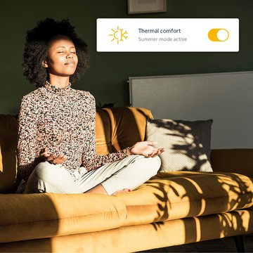 Hãy cho bản thân một khởi đầu êm dịu cho ngày mới. Khi rèm cửa của bạn mở ra và mời ánh sáng ban ngày vào, hệ thống sưởi sẽ chuyển sang chế độ 'thoải mái'.